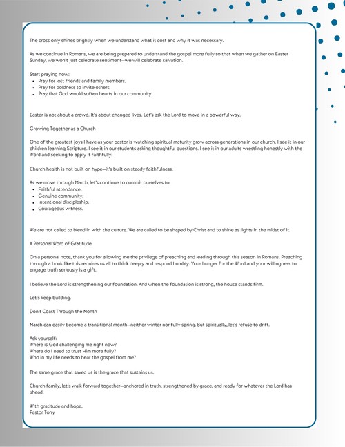 Catch up on recent updates, events, and church news.